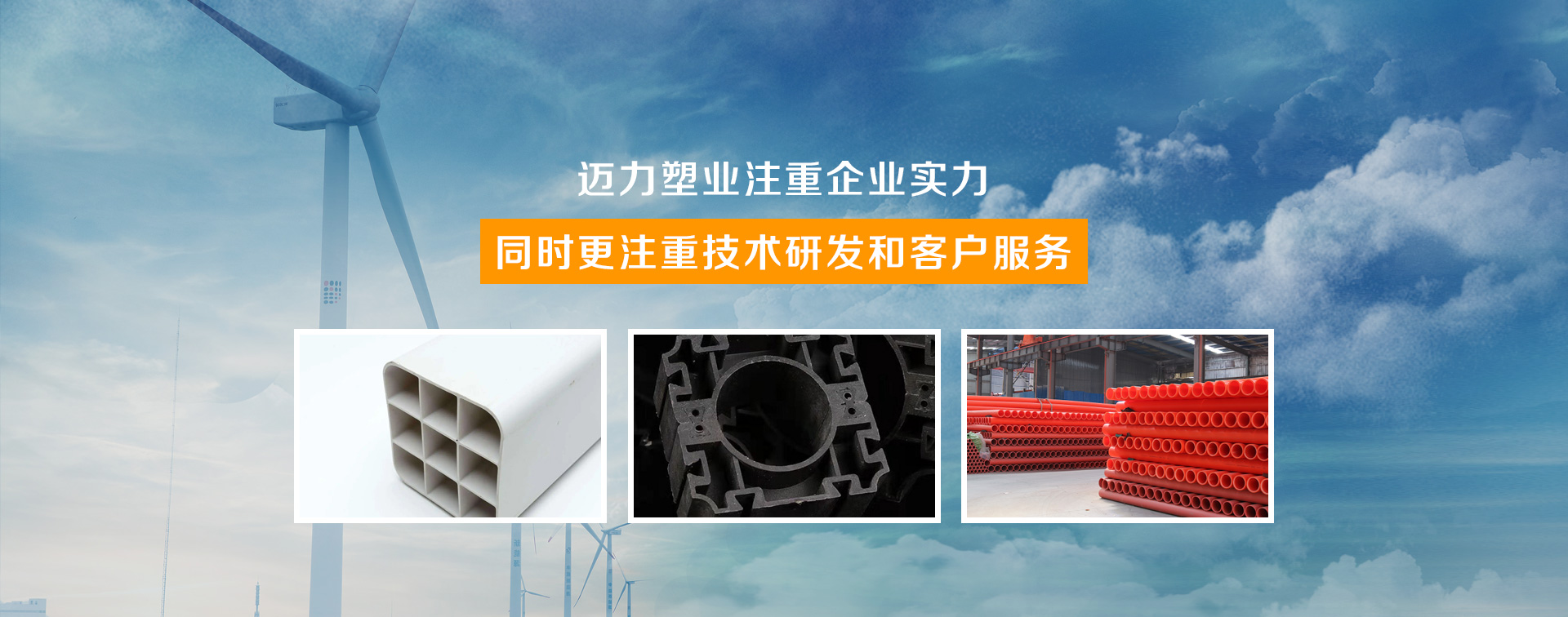 無錫邁力塑業(yè)科技有限公司地處長江三角洲蘇錫常經(jīng)濟(jì)發(fā)達(dá)區(qū),坐落于江南名鎮(zhèn)--華士鎮(zhèn),緊鄰天下第一村“中國華西村”,緊靠沿江高速華西道口,距上海130公里、南京150公里,地理位置優(yōu)越,交通十分便捷。 本廠創(chuàng)辦于2010年,全廠職工總數(shù)為42名,工程師技術(shù)人員5名,擁有國內(nèi)先進(jìn)的錐形雙螺桿、單螺桿擠出生產(chǎn)線9條,是專業(yè)生產(chǎn)PE頂管、PVC-U埋地式普通電力電纜管套、PVC-C高壓電纜套管、MPP電纜套管等管材、管件、BWFRP電纜管拉擠纏繞管。 本廠研制生產(chǎn)的埋地電力通訊電...